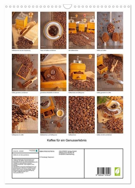 QUALITÄT - Hochwertiger Fotokalender mit 12 wunderschönen Motiven auf lichtbeständigem Bilderdruckpapier, robuste Spiralbindung mit Aufhängebügel.NACHHALTIG - deutliche Abfallreduzierung durch bedarfsgerechte Einzelstückfertigung, umweltfreundliches FSC-zertifiziertes Papier, Produktion in Deutschland, klimabewusste Logistik.PERFEKTES GESCHENK - Kalender für Freunde und Familie, für Kinder und Erwachsene, jung und alt, zu Weihnachten, Geburtstag oder zwischendurch.VIELFALT -Bildkalender in verschiedenen Formaten, z.B. DIN A5, DIN A4, DIN A3 sowie DIN A2. Ob Naturmotiv, Gemälde oder Fotos, ideal für ein persönliches Wohlfühlambiente.Der Kaffeekalender für ein außergewöhnliches Genusserlebnis von Autor(in): Fotodesign Siepmann