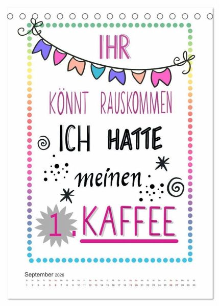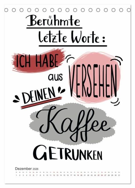 QUALITÄT - Hochwertiger Fotokalender mit 12 wunderschönen Motiven auf lichtbeständigem Bilderdruckpapier, robuste Spiralbindung.NACHHALTIG - deutliche Abfallreduzierung durch bedarfsgerechte Einzelstückfertigung, umweltfreundliches FSC-zertifiziertes Papier, Produktion in Deutschland, klimabewusste Logistik.PERFEKTES GESCHENK - Kalender für Freunde und Familie, für Kinder und Erwachsene, jung und alt, zu Weihnachten, Geburtstag oder zwischendurch.VIELFALT - Bildkalender in verschiedenen Formaten, z.B. DIN A5, DIN A4, DIN A3 sowie DIN A2. Ob Naturmotiv, Gemälde oder Fotos, ideal für ein persönliches Wohlfühlambiente.Freche Kaffeesprüche im Handlettering-Stil von Autor(in): Christine Brendle-Behnisch Müller