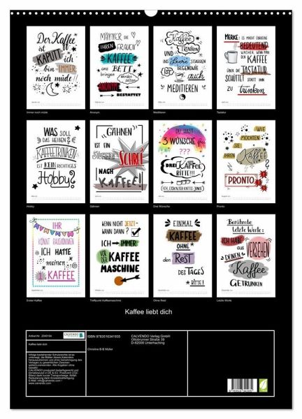 QUALITÄT - Hochwertiger Fotokalender mit 12 wunderschönen Motiven auf lichtbeständigem Bilderdruckpapier, robuste Spiralbindung mit Aufhängebügel.NACHHALTIG - deutliche Abfallreduzierung durch bedarfsgerechte Einzelstückfertigung, umweltfreundliches FSC-zertifiziertes Papier, Produktion in Deutschland, klimabewusste Logistik.PERFEKTES GESCHENK - Kalender für Freunde und Familie, für Kinder und Erwachsene, jung und alt, zu Weihnachten, Geburtstag oder zwischendurch.VIELFALT - Bildkalender in verschiedenen Formaten, z.B. DIN A5, DIN A4, DIN A3 sowie DIN A2. Ob Naturmotiv, Gemälde oder Fotos, ideal für ein persönliches Wohlfühlambiente.Freche Kaffeesprüche im Handlettering-Stil von Autor(in): Christine Brendle-Behnisch Müller
