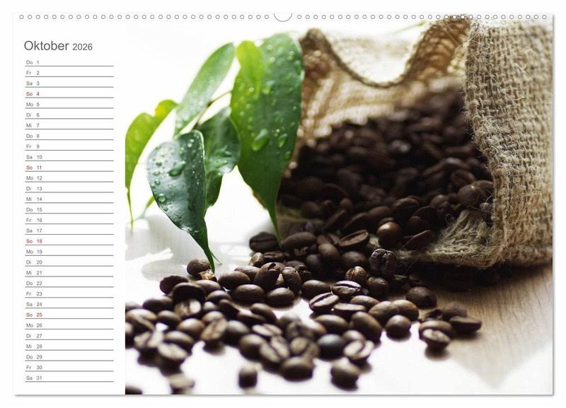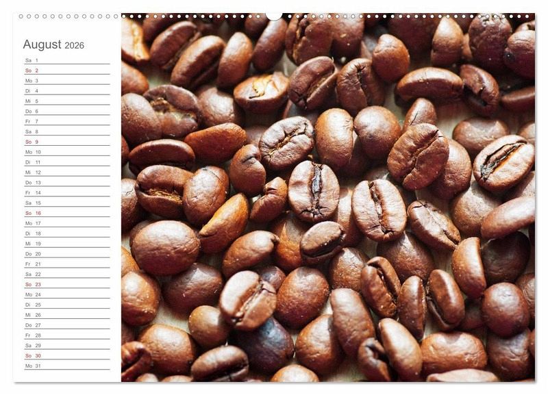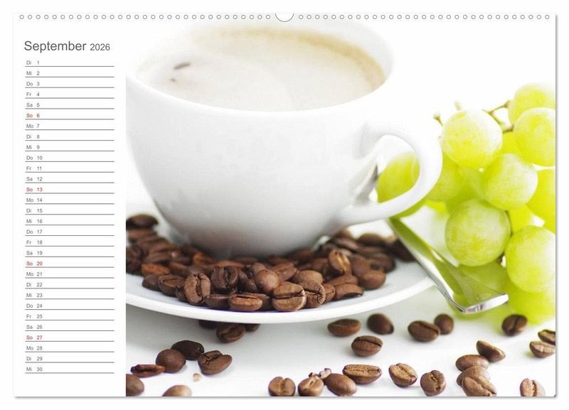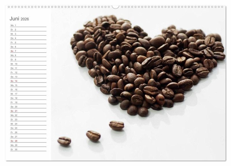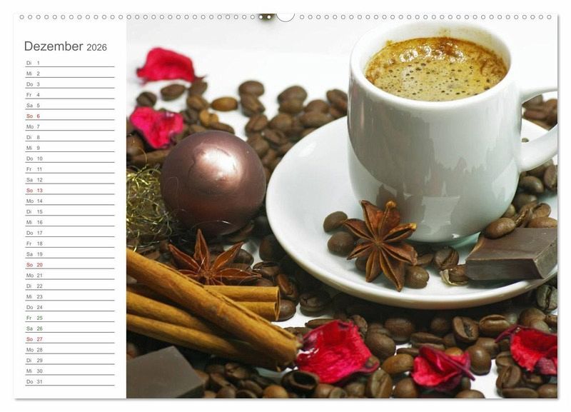 Kaffee steht für einen Wachmacher, für gemütliche Plauderstündchen mit Freunden, oder für die kleine Pause zwischendurch. Kaffee, ob Zuhause, in der Bar, oder bei einem Stück feinem Kuchen, lässt sich nicht mehr wegdenken. Dieser Terminkalender zeigt eindrucksvolle Kaffee-Impressionen für jeden Tag.
