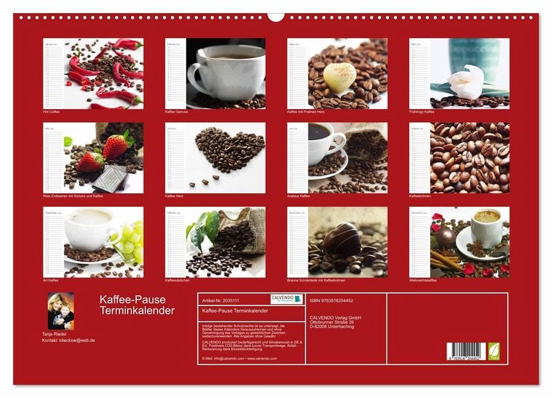 QUALITÄT - Hochwertiger Fotokalender mit 12 wunderschönen Motiven auf lichtbeständigem Bilderdruckpapier, robuste Spiralbindung mit Aufhängebügel.NACHHALTIG - deutliche Abfallreduzierung durch bedarfsgerechte Einzelstückfertigung, umweltfreundliches FSC-zertifiziertes Papier, Produktion in Deutschland, klimabewusste Logistik.PERFEKTES GESCHENK - Kalender für Freunde und Familie, für Kinder und Erwachsene, jung und alt, zu Weihnachten, Geburtstag oder zwischendurch.VIELFALT - Bildkalender in verschiedenen Formaten, z.B. DIN A5, DIN A4, DIN A3 sowie DIN A2. Ob Naturmotiv, Gemälde oder Fotos, ideal für ein persönliches Wohlfühlambiente.Kaffee Pause, das ist der Moment, einen guten Kaffee zu genießen, um zur Ruhe zu kommen, abzuschalten und Kraft zu sammeln. von Autor(in): Tanja Riedel
