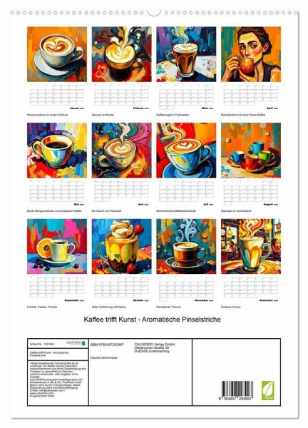 PREMIUM-LINIE - Brillanter Fotokalender mit 12 wunderschönen Motiven, Kunstdruck in Hochglanz in Museumsqualität.QUALITÄT - edle Materialien, stabile Rückwand mit 2 innovativen Einstecktaschen für eine optimale Präsentation an der Wand.NACHHALTIG - deutliche Abfallreduzierung durch bedarfsgerechte Einzelstückfertigung, umweltfreundliches FSC-zertifiziertes Papier, Produktion in Deutschland, klimabewusste Logistik.PERFEKTES GESCHENK - Kalender für Freunde und Familie, für Kinder und Erwachsene, jung und alt, zu Weihnachten, Geburtstag oder zwischendurch.Die Magie des Kaffees in farbenfrohen Motiven von Autor(in): Claudia Schimmack