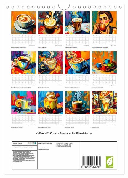 QUALITÄT - Hochwertiger Fotokalender mit 12 wunderschönen Motiven auf lichtbeständigem Bilderdruckpapier, robuste Spiralbindung mit Aufhängebügel.NACHHALTIG - deutliche Abfallreduzierung durch bedarfsgerechte Einzelstückfertigung, umweltfreundliches FSC-zertifiziertes Papier, Produktion in Deutschland, klimabewusste Logistik.PERFEKTES GESCHENK - Kalender für Freunde und Familie, für Kinder und Erwachsene, jung und alt, zu Weihnachten, Geburtstag oder zwischendurch.VIELFALT - Bildkalender in verschiedenen Formaten, z.B. DIN A5, DIN A4, DIN A3 sowie DIN A2. Ob Naturmotiv, Gemälde oder Fotos, ideal für ein persönliches Wohlfühlambiente.Die Magie des Kaffees in farbenfrohen Motiven von Autor(in): Claudia Schimmack