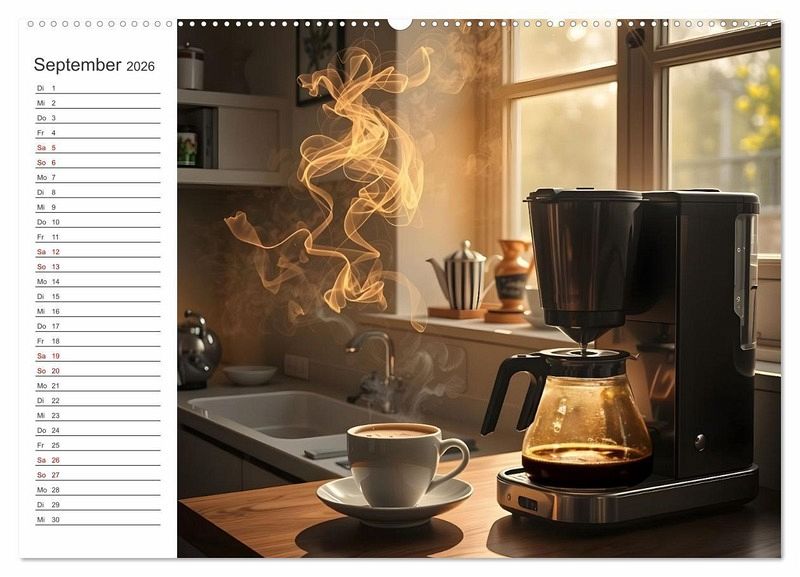 Tauchen Sie ein in die faszinierende Welt der Kaffeezubereitung! Unser exklusiver KI-Kalender nimmt Sie mit auf eine Reise durch 12 Monate voller Kaffeekultur. Jedes Blatt zeigt eindrucksvolle Bilder der verschiedenen Zubereitungsmethoden - von der traditionellen French Press bis hin zum exotischen vietnamesischen drip coffee. Perfekt für Kaffeeliebhaber und Genießer: Lassen Sie sich jeden Monat von neuen Kaffeekreationen inspirieren und lernen Sie mehr über die Handwerkskunst hinter jeder Tasse. Machen Sie Ihre Wände zum Kunstwerk - und Ihre Küche zum Café! Jetzt bestellen und täglich die Liebe zum Kaffee erleben!