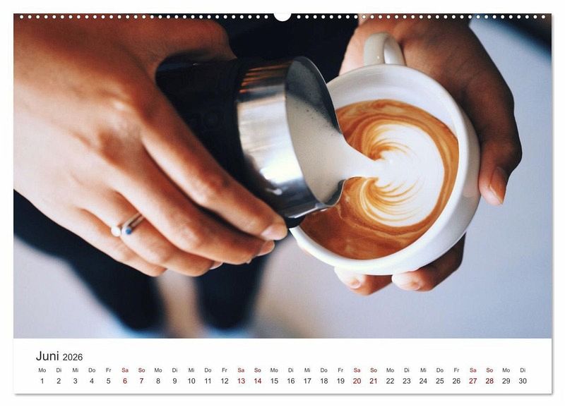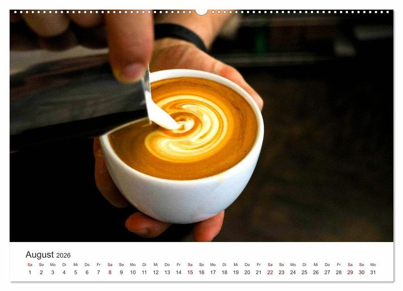Ein schön verzierter Kaffee lässt viele Herzen höher schlagen und erhöht den Genuss bei jedem Schluck. Dieser Kalender zeigt 12 sorgfältig ausgewählte Motive von beeindruckender Kaffeekunst. Da bekommt man Lust auf eine Tasse.