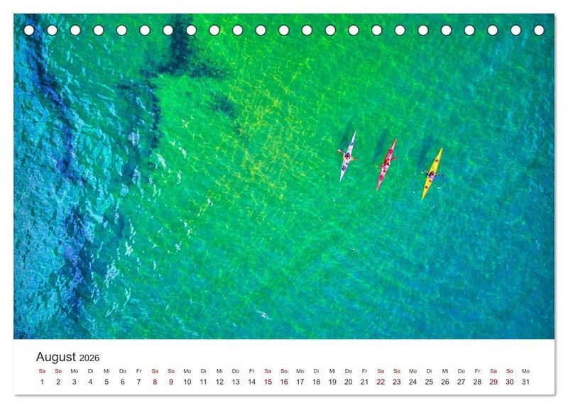 Ins Kajak rein und einfach drauf los paddeln! Dieser Kalender zeigt 12 atemberaubende Aufnahmen des tollen Wassersports und beeindruckt Sie jedes Monat aufs Neue mit einem bezaubernden Motiv.