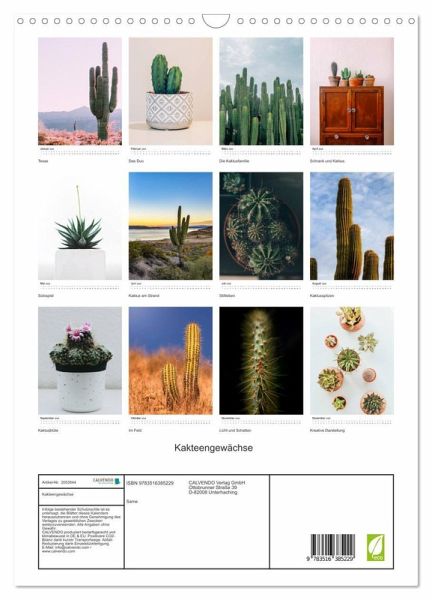 QUALITÄT - Hochwertiger Fotokalender mit 12 wunderschönen Motiven auf lichtbeständigem Bilderdruckpapier, robuste Spiralbindung mit Aufhängebügel.NACHHALTIG - deutliche Abfallreduzierung durch bedarfsgerechte Einzelstückfertigung, umweltfreundliches FSC-zertifiziertes Papier, Produktion in Deutschland, klimabewusste Logistik.PERFEKTES GESCHENK - Kalender für Freunde und Familie, für Kinder und Erwachsene, jung und alt, zu Weihnachten, Geburtstag oder zwischendurch.VIELFALT - Bildkalender in verschiedenen Formaten, z.B. DIN A5, DIN A4, DIN A3 sowie DIN A2. Ob Naturmotiv, Gemälde oder Fotos, ideal für ein persönliches Wohlfühlambiente.Jeder kennt die Kultpflanze: Die Kakteengewächse! Die fotografische Ansammlung konzentriert sich auf die Kultpflanze und präsentiert diese auf eine moderne Art und Weise. von Autor(in): Mehmet Sarialtin