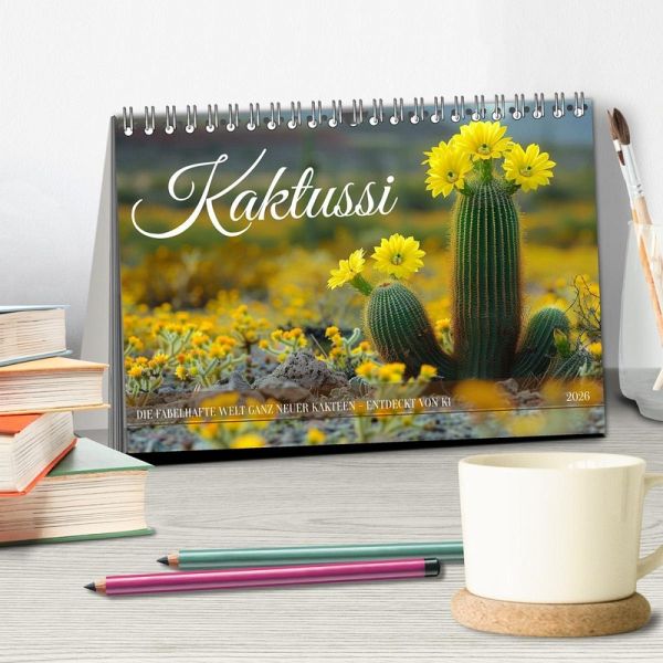 Willkommen in der blühenden Welt der Kakteen mit unserem 'Kaktussi' Kalender! Erleben Sie die Wunder der Wüstenflora mit KI-generierten Bildern, die die meisten Kakteen in voller Blüte zeigen. Jeder Monat offenbart eine neue Pracht von leuchtenden Blüten in verschiedenen Farben und Formen, die in der wilden Landschaft erstrahlen. Von satten Rot- und Orangetönen bis hin zu zarten Rosa- und Gelbtönen - erleben Sie die Vielfalt der blühenden Kakteen in ihrer natürlichen Umgebung. Holen Sie sich mit dem 'Kaktussi' Kalender einen Hauch von wilder Schönheit und lebendigen Farben in Ihr Zuhause!