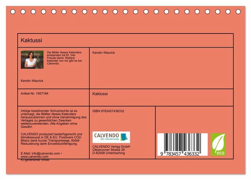 QUALITÄT - Hochwertiger Fotokalender mit 12 wunderschönen Motiven auf lichtbeständigem Bilderdruckpapier, robuste Spiralbindung.NACHHALTIG - deutliche Abfallreduzierung durch bedarfsgerechte Einzelstückfertigung, umweltfreundliches FSC-zertifiziertes Papier, Produktion in Deutschland, klimabewusste Logistik.PERFEKTES GESCHENK - Kalender für Freunde und Familie, für Kinder und Erwachsene, jung und alt, zu Weihnachten, Geburtstag oder zwischendurch.VIELFALT - Bildkalender in verschiedenen Formaten, z.B. DIN A5, DIN A4, DIN A3 sowie DIN A2. Ob Naturmotiv, Gemälde oder Fotos, ideal für ein persönliches Wohlfühlambiente.Blühende Stachler: Eine Jahresreise durch Kakteen von Autor(in): Kerstin Waurick