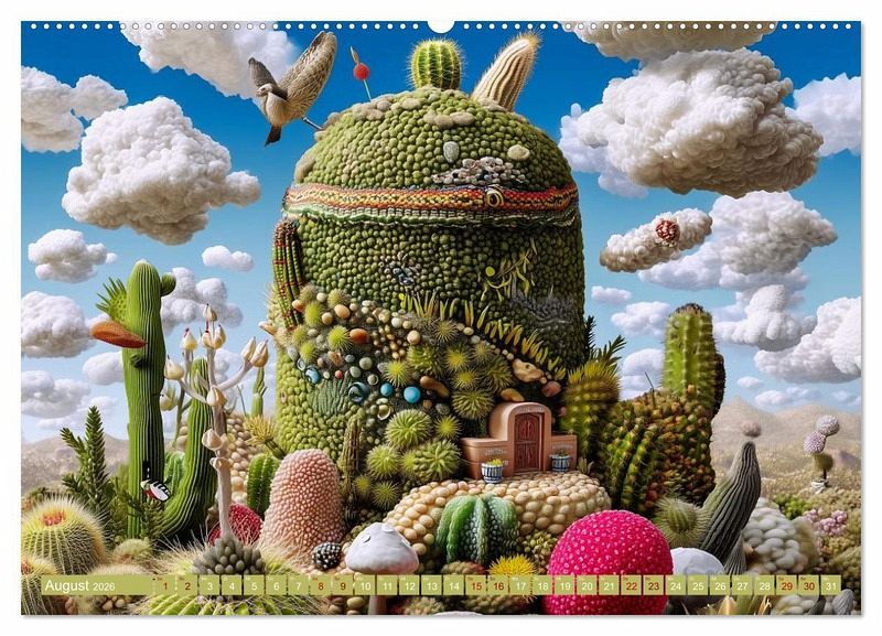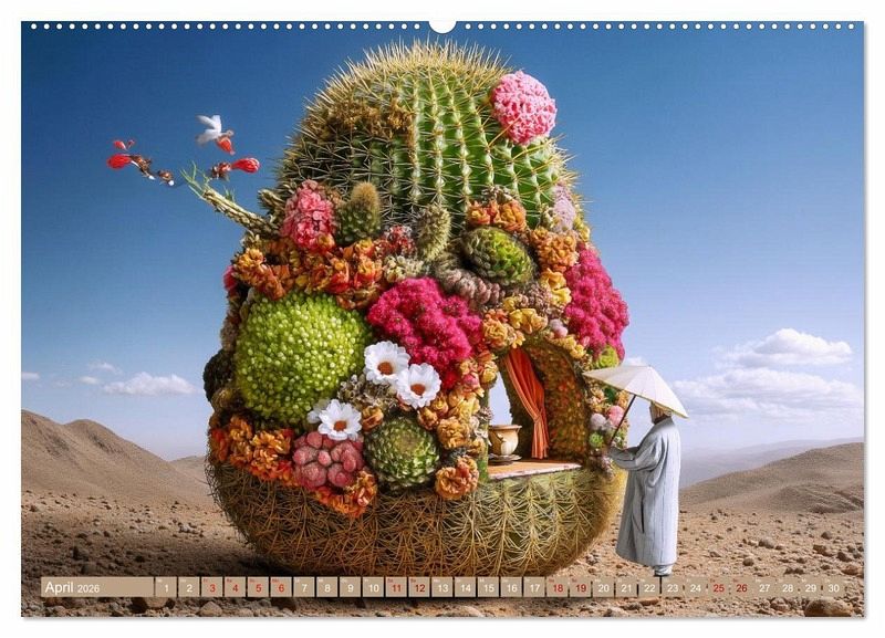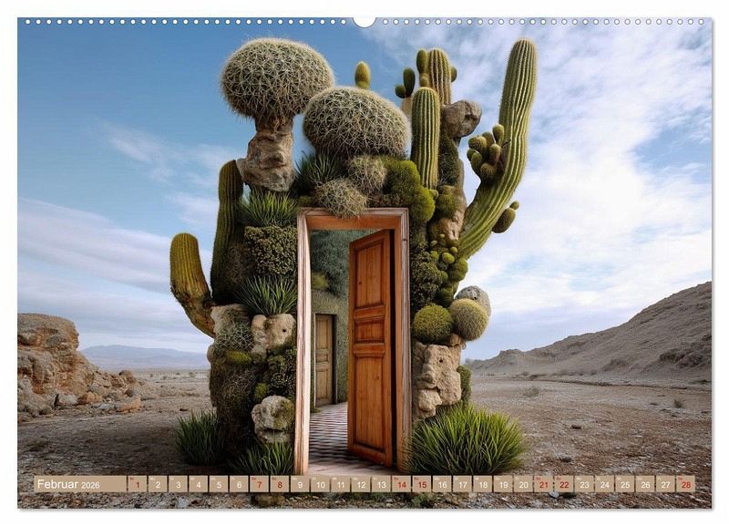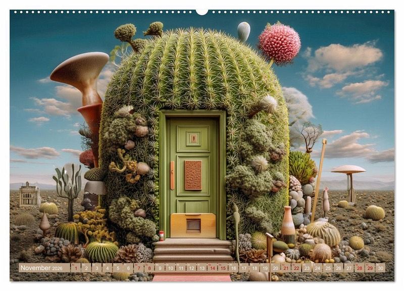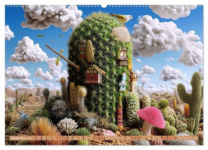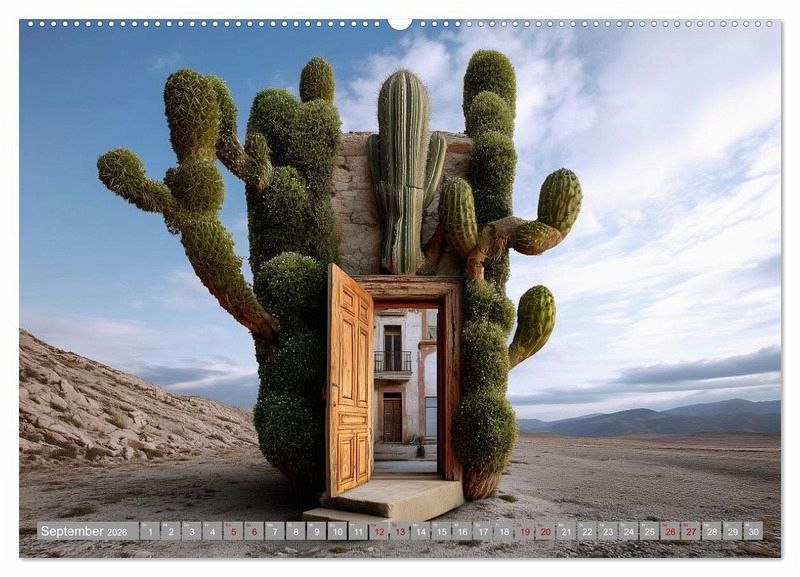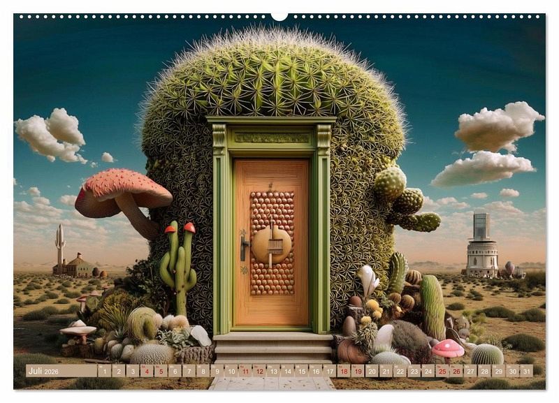Lassen Sie sich entführen in eine Welt voller stacheliger Fantasie und verblüffender Details. Zwischen Kaktusarchitektur, geheimnisvollen Türen und grüner Magie entdecken Sie jeden Monat neue, ungewöhnliche Perspektiven. Die Bilder wurden mit Hilfe künstlicher Intelligenz erschaffen - ideal für alle, die das Außergewöhnliche lieben - und das Grüne mit einem Augenzwinkern.