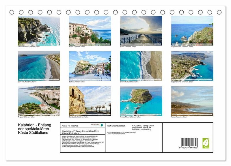 QUALITÄT - Hochwertiger Fotokalender mit 12 wunderschönen Motiven auf lichtbeständigem Bilderdruckpapier, robuste Spiralbindung.NACHHALTIG - deutliche Abfallreduzierung durch bedarfsgerechte Einzelstückfertigung, umweltfreundliches FSC-zertifiziertes Papier, Produktion in Deutschland, klimabewusste Logistik.PERFEKTES GESCHENK - Kalender für Freunde und Familie, für Kinder und Erwachsene, jung und alt, zu Weihnachten, Geburtstag oder zwischendurch.VIELFALT - Bildkalender in verschiedenen Formaten, z.B. DIN A5, DIN A4, DIN A3 sowie DIN A2. Ob Naturmotiv, Gemälde oder Fotos, ideal für ein persönliches Wohlfühlambiente.Die Küste Kalabriens überzeugt durch seine unterschiedlichsten Landschaften von schroffen Steilküsten, schwarzen Stränden bis hin zu ursprünglichen kleinen Fischerdörfern. von Autor(in): Luisa Rüter
