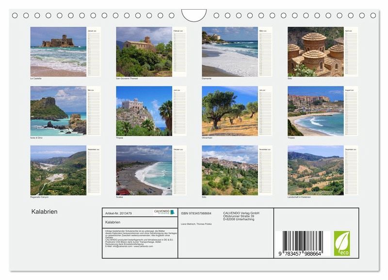 QUALITÄT - Hochwertiger Fotokalender mit 12 wunderschönen Motiven auf lichtbeständigem Bilderdruckpapier, robuste Spiralbindung mit Aufhängebügel.NACHHALTIG - deutliche Abfallreduzierung durch bedarfsgerechte Einzelstückfertigung, umweltfreundliches FSC-zertifiziertes Papier, Produktion in Deutschland, klimabewusste Logistik.PERFEKTES GESCHENK - Kalender für Freunde und Familie, für Kinder und Erwachsene, jung und alt, zu Weihnachten, Geburtstag oder zwischendurch.VIELFALT - Bildkalender in verschiedenen Formaten, z.B. DIN A5, DIN A4, DIN A3 sowie DIN A2. Ob Naturmotiv, Gemälde oder Fotos, ideal für ein persönliches Wohlfühlambiente.12 Bilder der Stiefelspitze Italiens begleiten Sie mit diesem Kalender durch dasJahr. Alte Städte wie Stilo und Tropea wechseln sich mit schönen Landschaften und Küsten ab. von Autor(in): Thomas Polske