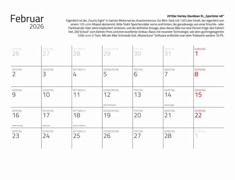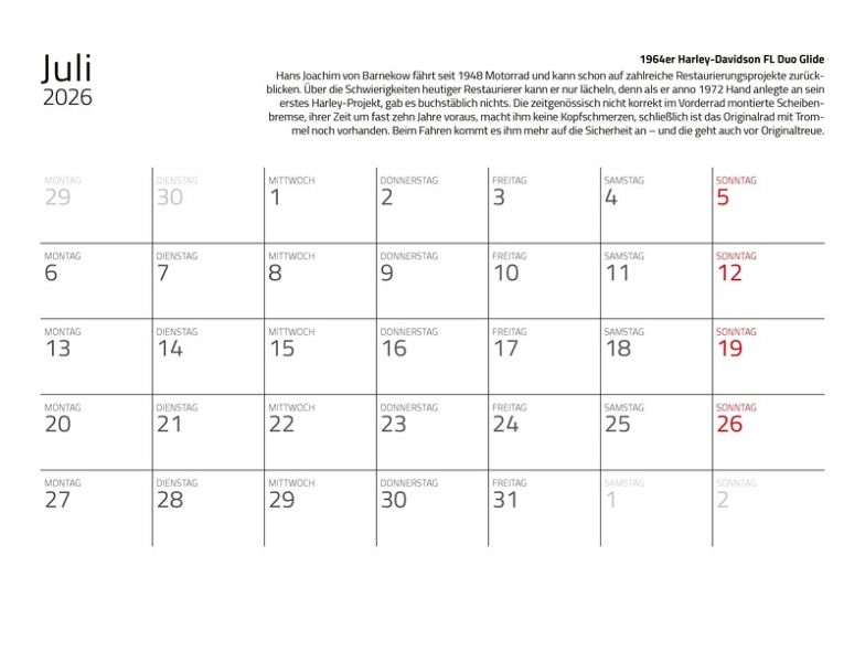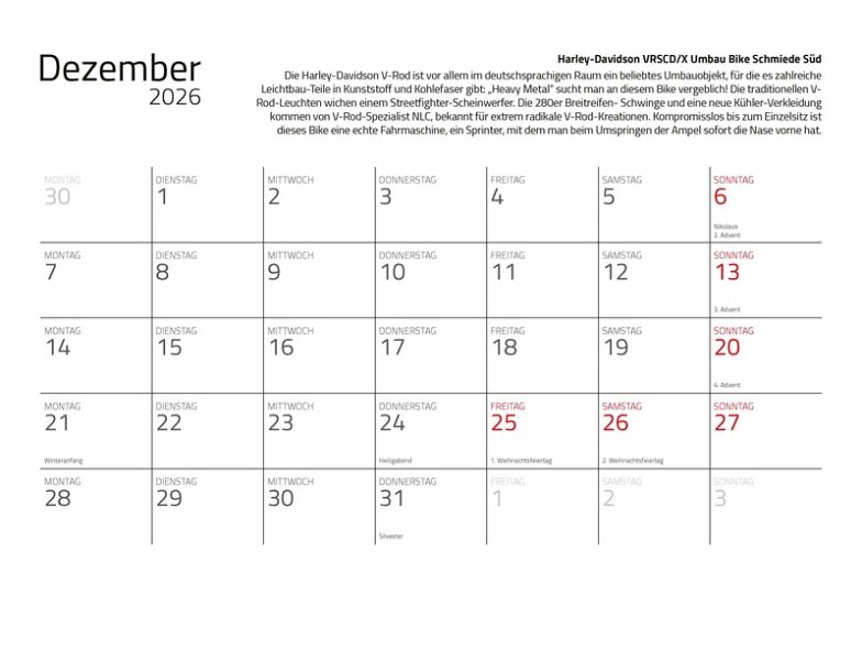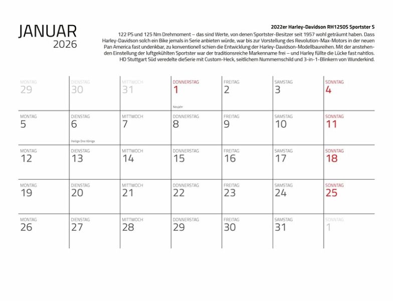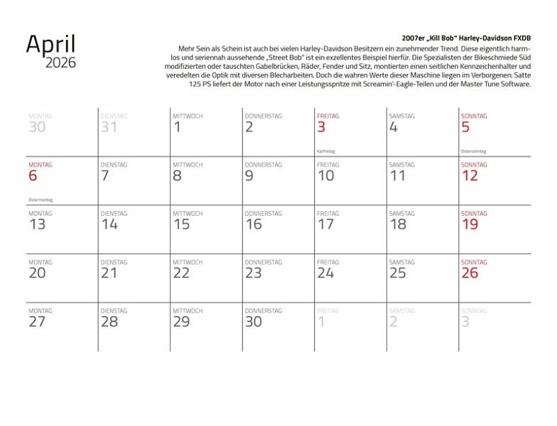 Jetzt auch als Eintragkalender zum Spitzenpreis erhältlich! Perfekt in Szene gesetzt vor stimmungsvoller Kulisse von Topfotograf Dieter Rebmann zeigt der Kalender Monat für Monat einen neuen Harley-Traum - ein Augenschmaus für Harley-Fans und das ideale Geschenk nicht nur zu Weihnachten.