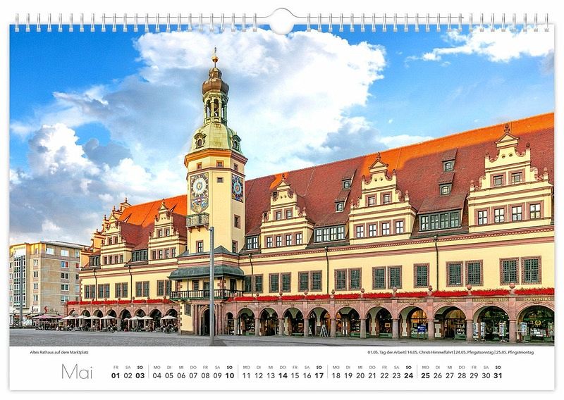 Kalender Leipzig 2026 45 x 30 cm Lassen Sie sich in unserem Kalender für 2026 inspirieren von den historische Gebäude, Türmen und geschichtsträchtigen Orten der sächsischen Großstadt. Mit ausgewählten Luftbildern! Kalender Format 45 x 30 cm silberne Wire-O Bindung 250g/qm Premium Papier Deckblatt, 12 Monate, Rückseite weißes Kalendarium 2026 inkl. gesetzlicher Feiertage hochwertiger Digitaldruck starke Rückpappe gedruckt und produziert in Dresden