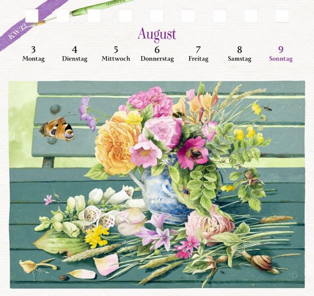 Die Künstlerin Marjolein Bastin liebt den täglichen Blick in den Garten. Die Schönheit der Natur im Wechsel der Jahreszeiten gibt ihr Kraft und Inspiration für ihre außergewöhnlichen und berührendenen Werke. Dieser wundervolle Aufstellkalender mit Wochenkalendarium zeigt eine Auswahl ihrer schönsten Gartenmotive. Die 53 hochwertig gedruckten Abbildungen lassen sich leicht abtrennen und als Postkarten versenden, sammeln oder zu dekorativen Bildern rahmen.