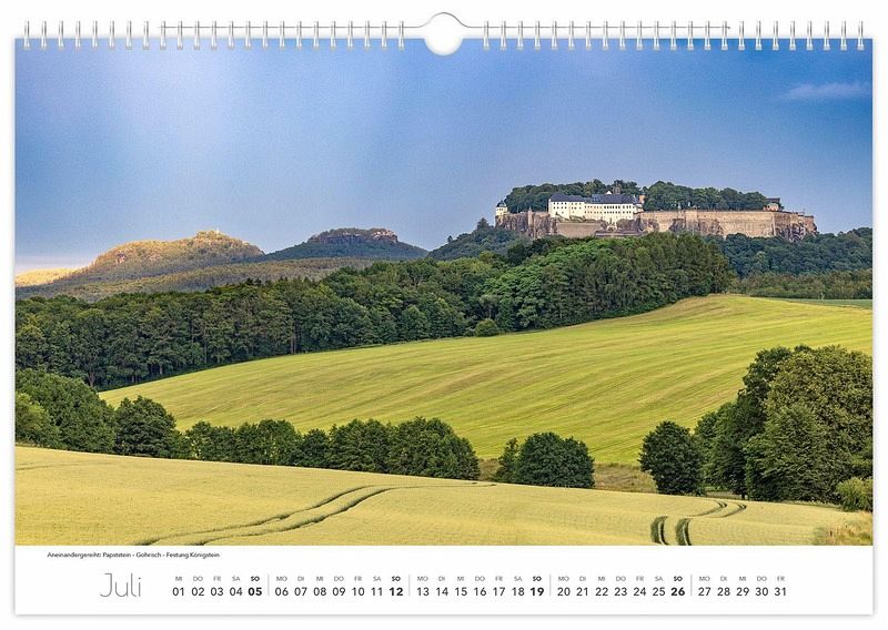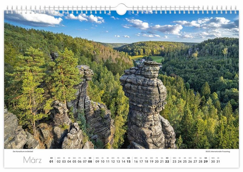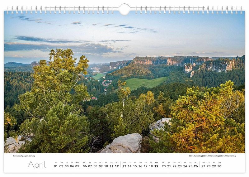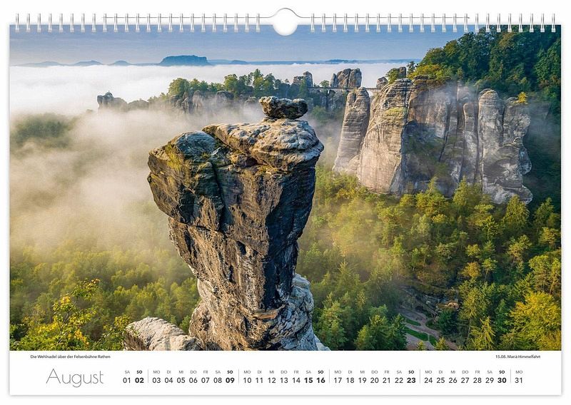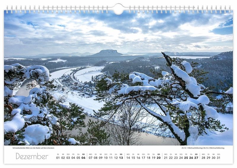Kalender Sächsische Schweiz 2026 45 x 30 cm weißes Kalendarium Unser beliebter Kalender-Klassiker begeistert auch 2026 nicht nur Wander-, Kletter- und Naturfreunde! Die 12 eindrucksvollen Panorama-Aufnahmen führen dem Betrachter den außergewöhnlichen Facettenreichtum des Elbsandsteingebirges vor Augen und machen Lust auf eine Wanderung oder Klettertour durch die Sächsische Schweiz. Dieser Kalender ist eine Bereicherung für Einheimische, Touristen oder eine Geschenkidee für Liebhaber des Elbsandsteingebirges. Mit eindrucksvollen Panorama-Aufnahmen. Mit ausgewählten Luftbildern! Kalender Format 45 x 30 cm silberne Wire-O Bindung 250g/qm Premium Papier Deckblatt, 12 Monate, Rückseite weißes Kalendarium 2026 inkl. gesetzlicher Feiertage hochwertiger Digitaldruck starke Rückpappe gedruckt und produziert in Dresden