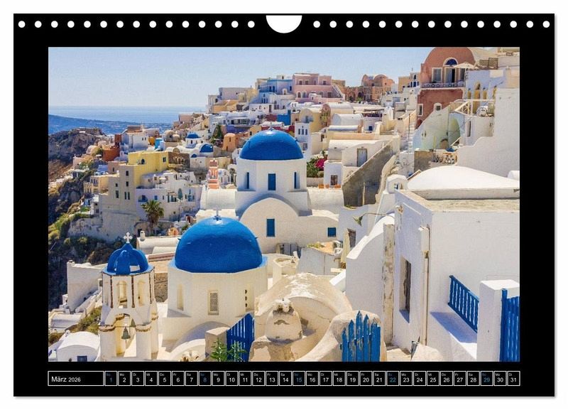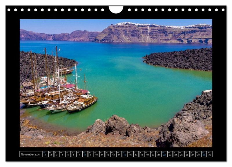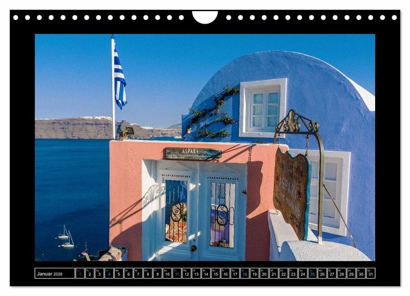 Ob es die bizarre vulkanische Landschaft ist, die typische farbenfrohe Architektur oder die Gastfreundschaft der Menschen - dieser Kalender begleitet Sie ein Jahr lang mit Motiven von Santorini, der einzigartigen Kykladeninsel.