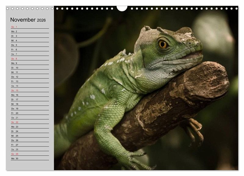 Reptilien sind entwicklungsgeschichtlich sehr alte Tiere, die fast alle Lebensräume unserer Erde erobert haben. Spezielle Sinnesorgane haben die nötige Voraussetzung für die weltweite Verbreitung der Reptilien geschaffen. Ein toller Planer für Reptilien-Freunde.