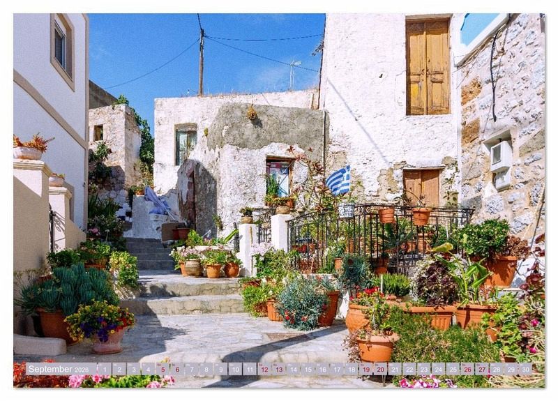 Kalymnos ist eine Insel voller Charakter - felsig, farbig, ursprünglich. Mit ihren Klöstern, engen Gassen, Kuppelkirchen und Hafenblicken verkörpert sie die stille Schönheit des Dodekanes. Dieser Kalender führt durch das Jahr mit zwölf authentischen Motiven aus Orten wie Póthia, Chorió, Telendos und Vathí: orthodoxe Kirchen vor Bergkulisse, bunte Boote im Hafenlicht, verlassene Basiliken, verwinkelte Altstadtwinkel und immer wieder das leuchtende Blau der Ägäis. Fernab touristischer Klischees erzählt Kalymnos hier von Geschichte, Glauben und gelebter Inselliebe. Eine Einladung zum Sehen, Spüren und Träumen - für alle, die Griechenland auch in seiner rauen Sanftheit lieben.