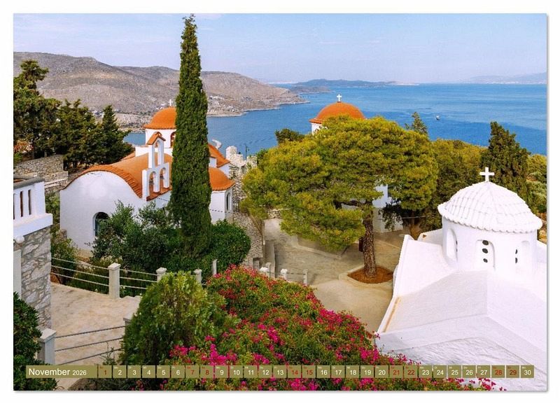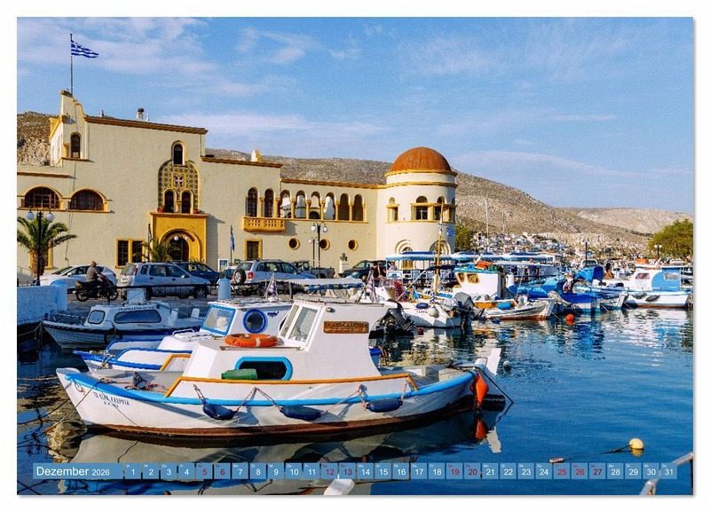 Kalymnos ist eine Insel voller Charakter - felsig, farbig, ursprünglich. Mit ihren Klöstern, engen Gassen, Kuppelkirchen und Hafenblicken verkörpert sie die stille Schönheit des Dodekanes. Dieser Kalender führt durch das Jahr mit zwölf authentischen Motiven aus Orten wie Póthia, Chorió, Telendos und Vathí: orthodoxe Kirchen vor Bergkulisse, bunte Boote im Hafenlicht, verlassene Basiliken, verwinkelte Altstadtwinkel und immer wieder das leuchtende Blau der Ägäis. Fernab touristischer Klischees erzählt Kalymnos hier von Geschichte, Glauben und gelebter Inselliebe. Eine Einladung zum Sehen, Spüren und Träumen - für alle, die Griechenland auch in seiner rauen Sanftheit lieben.