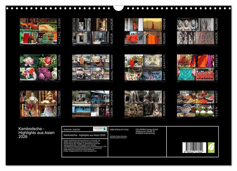 QUALITÄT - Hochwertiger Fotokalender mit 12 wunderschönen Motiven auf lichtbeständigem Bilderdruckpapier, robuste Spiralbindung mit Aufhängebügel.NACHHALTIG - deutliche Abfallreduzierung durch bedarfsgerechte Einzelstückfertigung, umweltfreundliches FSC-zertifiziertes Papier, Produktion in Deutschland, klimabewusste Logistik.PERFEKTES GESCHENK - Kalender für Freunde und Familie, für Kinder und Erwachsene, jung und alt, zu Weihnachten, Geburtstag oder zwischendurch.VIELFALT - Bildkalender in verschiedenen Formaten, z.B. DIN A5, DIN A4, DIN A3 sowie DIN A2. Ob Naturmotiv, Gemälde oder Fotos, ideal für ein persönliches Wohlfühlambiente.Uralte Khmer-Tempel und der farbige Alltag in Kambodscha. von Autor(in): Gabriele Gerner-Haudum