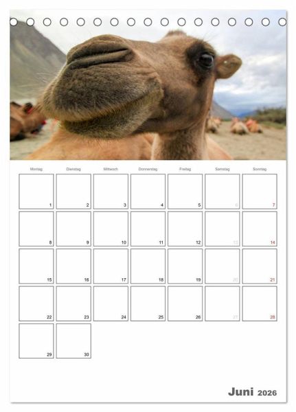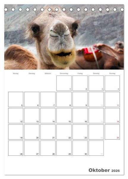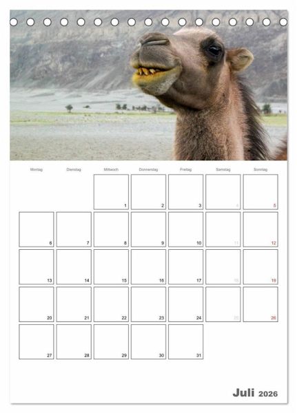 Kamele ganz nah. Dieser einzigartige Tierkalender zeigt skurrile, lustige und unglaubliche Nahaufnahmen von Kamelen. Durch die Planerfunktion verpassen Sie und Ihre Familie auch keinen Termin mehr.