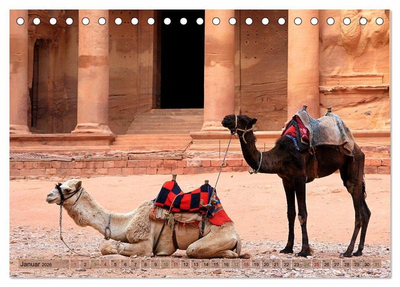 Januar: Vor dem Schatzhaus in Petra, Jordanien
