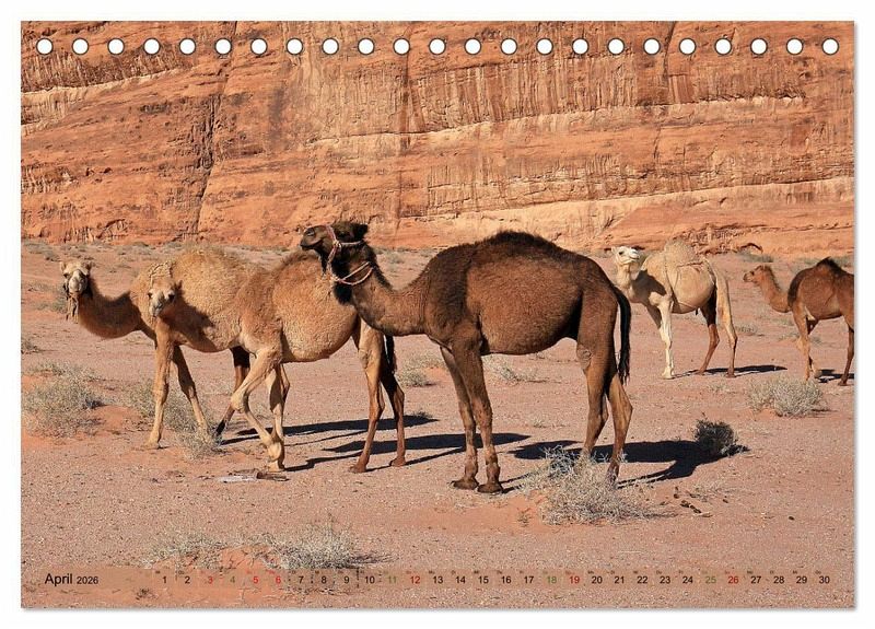 April: Frei lebende Kamele, Wadi Rum, Jordanien