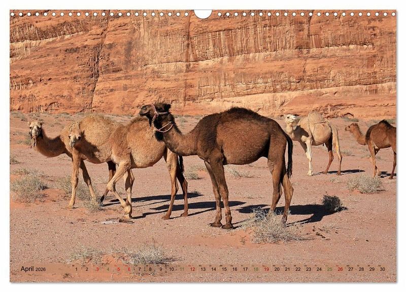 April: Frei lebende Kamele, Wadi Rum, Jordanien