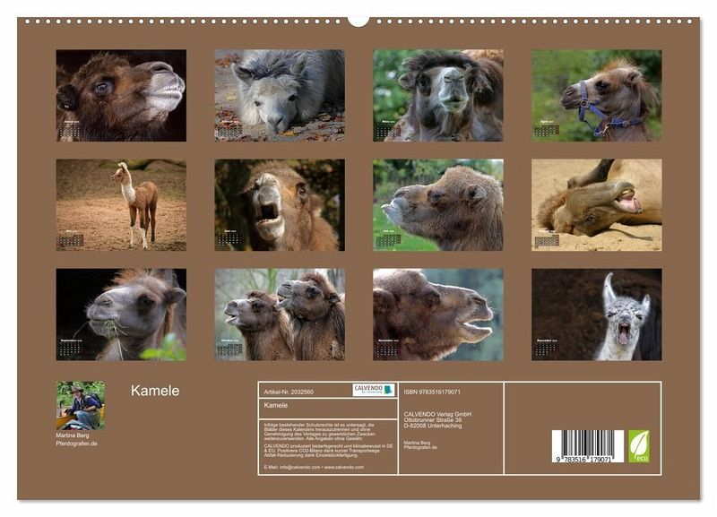 PREMIUM-LINIE - Brillanter Fotokalender mit 12 wunderschönen Motiven, Kunstdruck in Hochglanz in Museumsqualität.QUALITÄT - edle Materialien, stabile Rückwand mit 2 innovativen Einstecktaschen für eine optimale Präsentation an der Wand.NACHHALTIG - deutliche Abfallreduzierung durch bedarfsgerechte Einzelstückfertigung, umweltfreundliches FSC-zertifiziertes Papier, Produktion in Deutschland, klimabewusste Logistik.PERFEKTES GESCHENK - Kalender für Freunde und Familie, für Kinder und Erwachsene, jung und alt, zu Weihnachten, Geburtstag oder zwischendurch.Ausdrucksvolle Kamelporträts von Autor(in): Martina Berg