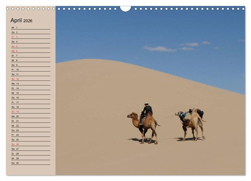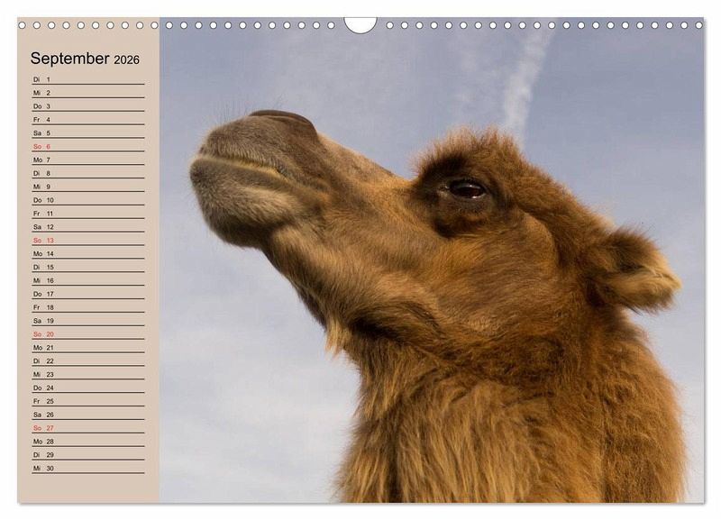 Kamele sind genügsam und stark und ihr Blick versprüht eine gewisse Arroganz und Anmut. Sie sind hilfreiche und geduldige Lastenträger. Das zweihöckrige Trampeltier ist in weiten Teilen Asiens verbreitet und es gibt auch noch einen kleinen wildlebenden Bestand. Das einhöckrige Dromedar ist in Afrika und Arabien zuhause und es gibt keine Wildbestände mehr. Ein schöner Planer für die gesamte Familie.