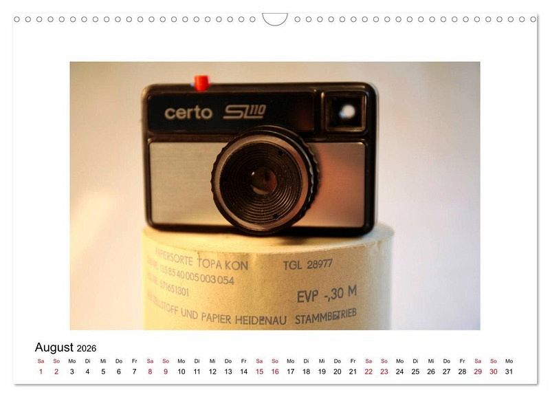 Fast schon vergessen, gibt der Kalender einen Rückblick zur Kamerageschichte der DDR. 12 ausgewählte Kameraaufnahmen mit detailierten Zeitdokumenten sind im Kalender "Kameras der DDR" zu bestaunen. Die Aufnahmen der Kameras stammen aus der Zeit, als die DDR als eine der weltweit größten Hersteller der Kameraindustrie galt.