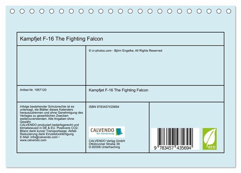 QUALITÄT - Hochwertiger Fotokalender mit 12 wunderschönen Motiven auf lichtbeständigem Bilderdruckpapier, robuste Spiralbindung.NACHHALTIG - deutliche Abfallreduzierung durch bedarfsgerechte Einzelstückfertigung, umweltfreundliches FSC-zertifiziertes Papier, Produktion in Deutschland, klimabewusste Logistik.PERFEKTES GESCHENK - Kalender für Freunde und Familie, für Kinder und Erwachsene, jung und alt, zu Weihnachten, Geburtstag oder zwischendurch.VIELFALT - Bildkalender in verschiedenen Formaten, z.B. DIN A5, DIN A4, DIN A3 sowie DIN A2. Ob Naturmotiv, Gemälde oder Fotos, ideal für ein persönliches Wohlfühlambiente.Die F-16 Fighting Falcon, ein zeitloser Jet seit 1976 von Autor(in): Björn Engelke