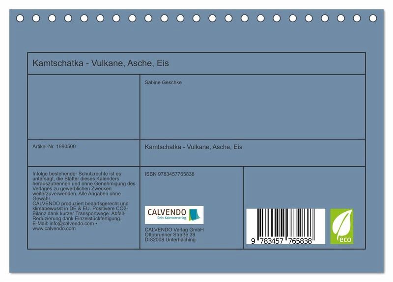 QUALITÄT - Hochwertiger Fotokalender mit 12 wunderschönen Motiven auf lichtbeständigem Bilderdruckpapier, robuste Spiralbindung.NACHHALTIG - deutliche Abfallreduzierung durch bedarfsgerechte Einzelstückfertigung, umweltfreundliches FSC-zertifiziertes Papier, Produktion in Deutschland, klimabewusste Logistik.PERFEKTES GESCHENK - Kalender für Freunde und Familie, für Kinder und Erwachsene, jung und alt, zu Weihnachten, Geburtstag oder zwischendurch.VIELFALT - Bildkalender in verschiedenen Formaten, z.B. DIN A5, DIN A4, DIN A3 sowie DIN A2. Ob Naturmotiv, Gemälde oderFotos, ideal für ein persönliches Wohlfühlambiente.Eindrücke der vulkangeprägten Landschaften Kamtschatkas von Autor(in): Sabine Geschke