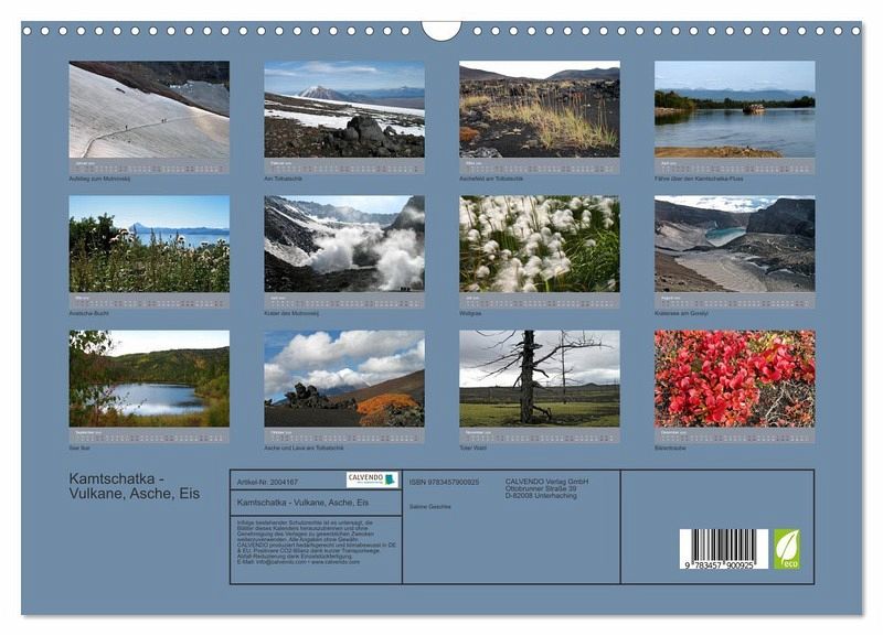 QUALITÄT - Hochwertiger Fotokalender mit 12 wunderschönen Motiven auf lichtbeständigem Bilderdruckpapier, robuste Spiralbindung mit Aufhängebügel.NACHHALTIG - deutliche Abfallreduzierung durch bedarfsgerechte Einzelstückfertigung, umweltfreundliches FSC-zertifiziertes Papier, Produktion in Deutschland, klimabewusste Logistik.PERFEKTES GESCHENK - Kalender für Freunde und Familie, für Kinder und Erwachsene, jung und alt, zu Weihnachten, Geburtstag oder zwischendurch.VIELFALT - Bildkalender in verschiedenen Formaten, z.B. DIN A5, DIN A4, DIN A3 sowie DIN A2. Ob Naturmotiv, Gemälde oder Fotos, ideal für ein persönliches Wohlfühlambiente.Eindrücke der vulkangeprägten Landschaften Kamtschatkas von Autor(in): Sabine Geschke