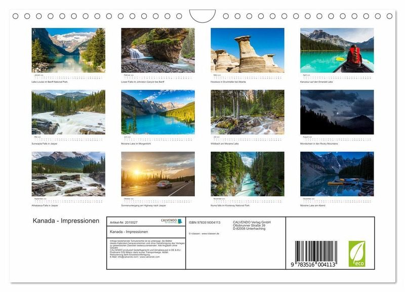 QUALITÄT - Hochwertiger Fotokalender mit 12 wunderschönen Motiven auf lichtbeständigem Bilderdruckpapier, robuste Spiralbindung mit Aufhängebügel.NACHHALTIG - deutliche Abfallreduzierung durch bedarfsgerechte Einzelstückfertigung, umweltfreundliches FSC-zertifiziertes Papier, Produktion in Deutschland, klimabewusste Logistik.PERFEKTES GESCHENK - Kalender für Freunde und Familie, für Kinder und Erwachsene, jung und alt, zu Weihnachten, Geburtstag oder zwischendurch.VIELFALT - Bildkalender in verschiedenen Formaten, z.B. DIN A5, DIN A4, DIN A3 sowie DIN A2. Ob Naturmotiv, Gemälde oder Fotos, ideal für ein persönliches Wohlfühlambiente.13 spektakuläre Aufnahmen der kanadischen Landschaft von Calgary nach Jasper von Autor(in): rclassen