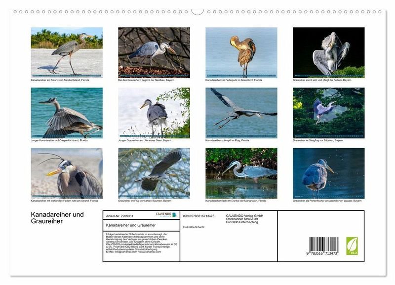 PREMIUM-LINIE - Brillanter Fotokalender mit 12 wunderschönen Motiven, Kunstdruck in Hochglanz in Museumsqualität.QUALITÄT - edle Materialien, stabile Rückwand mit 2 innovativen Einstecktaschen für eine optimale Präsentation an der Wand.NACHHALTIG - deutliche Abfallreduzierung durch bedarfsgerechte Einzelstückfertigung, umweltfreundliches FSC-zertifiziertes Papier, Produktion in Deutschland, klimabewusste Logistik.PERFEKTES GESCHENK - Kalender für Freunde und Familie, für Kinder und Erwachsene, jung und alt, zu Weihnachten, Geburtstag oder zwischendurch.Der Kanadareiher, zuhause in Nordamerika, und sein Verwandter der Graureiher, zuhause auf den anderen Kontinenten, werden vorgestellt. von Autor(in): Iris Editha Schacht