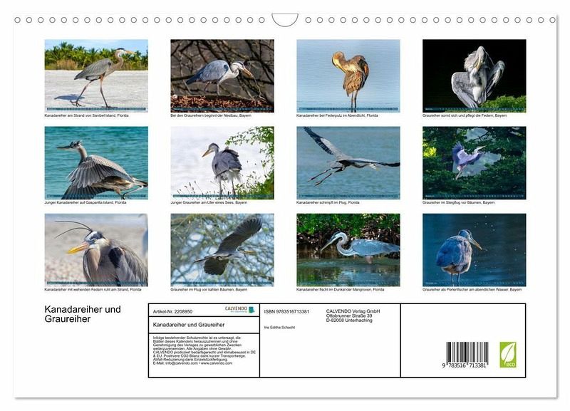 QUALITÄT - Hochwertiger Fotokalender mit 12 wunderschönen Motiven auf lichtbeständigem Bilderdruckpapier, robuste Spiralbindung mit Aufhängebügel.NACHHALTIG - deutliche Abfallreduzierung durch bedarfsgerechte Einzelstückfertigung, umweltfreundliches FSC-zertifiziertes Papier, Produktion in Deutschland, klimabewusste Logistik.PERFEKTES GESCHENK - Kalender für Freunde und Familie, für Kinder und Erwachsene, jung und alt, zu Weihnachten, Geburtstag oder zwischendurch.VIELFALT - Bildkalender in verschiedenen Formaten, z.B. DIN A5, DIN A4, DIN A3 sowie DIN A2. Ob Naturmotiv, Gemälde oder Fotos, ideal für ein persönliches Wohlfühlambiente.Der Kanadareiher, zuhause in Nordamerika, und sein Verwandter der Graureiher, zuhause auf den anderen Kontinenten, werden vorgestellt. von Autor(in): Iris Editha Schacht