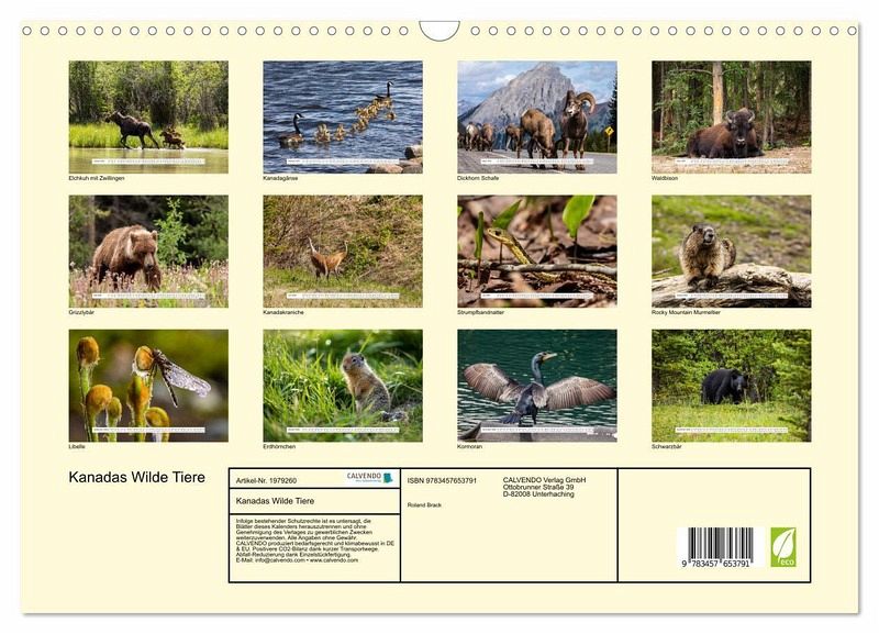 QUALITÄT - Hochwertiger Fotokalender mit 12 wunderschönen Motiven auf lichtbeständigem Bilderdruckpapier, robuste Spiralbindung mit Aufhängebügel.NACHHALTIG - deutliche Abfallreduzierung durch bedarfsgerechte Einzelstückfertigung, umweltfreundliches FSC-zertifiziertes Papier, Produktion in Deutschland, klimabewusste Logistik.PERFEKTES GESCHENK - Kalender für Freunde und Familie, für Kinder und Erwachsene, jung und alt, zu Weihnachten, Geburtstag oder zwischendurch.VIELFALT - Bildkalender in verschiedenen Formaten, z.B. DIN A5, DIN A4, DIN A3 sowie DIN A2. Ob Naturmotiv, Gemälde oder Fotos, ideal für ein persönliches Wohlfühlambiente.Die wilden Tiere Kanadas vom mächtigen Grizzlybär bis zur filigranen Libelle von Autor(in): Roland Brack