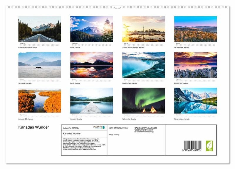 Kanada hat landschaftlich ungelaublich viel zu bieten. Dieser Kalender hält Kanadas unbeschreibliche Natur mit seinen Bildern fest und bringt es in Ihr Zuhause.
