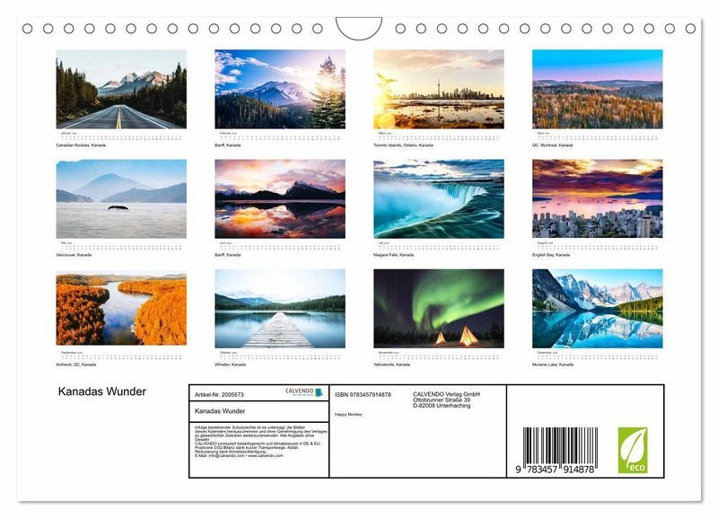 Kanada hat landschaftlich ungelaublich viel zu bieten. Dieser Kalender hält Kanadas unbeschreibliche Natur mit seinen Bildern fest und bringt es in Ihr Zuhause.
