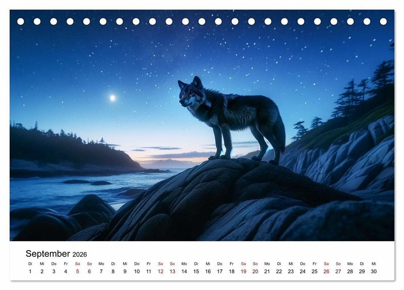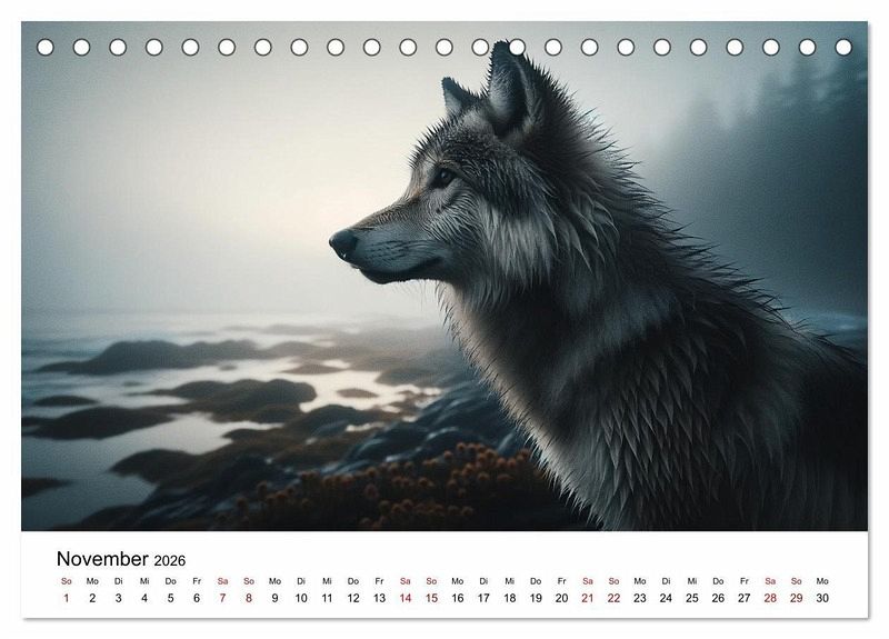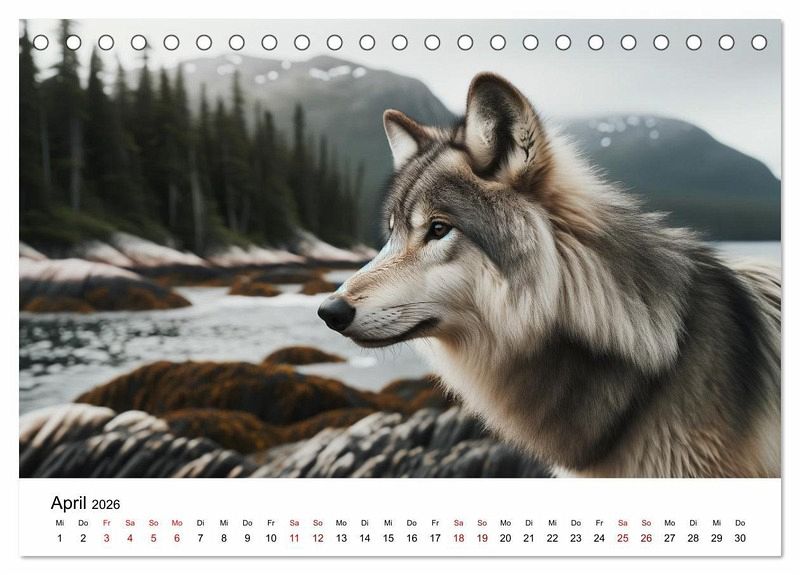 Entdecken Sie die majestätische Welt der kanadischen Küstenwölfe mit diesem exquisiten Kalender. Jeder Monat offenbart eine einzigartige, KI-generierte Darstellung dieser faszinierenden Tiere in ihrer natürlichen Umgebung. Erleben Sie die epische Schönheit Kanadas durch sorgfältig gestaltete Bilder, die die Wölfe inmitten von dichtem Nebel, auf robusten Klippen und unter dem funkelnden Sternenlicht zeigen. Dieser Kalender ist nicht nur ein Zeitmesser, sondern eine Ode an die wilde und unberührte Natur, die die Küstenwölfe ihr Zuhause nennen.