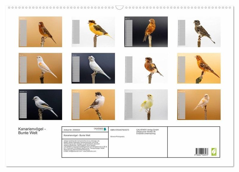 QUALITÄT - Hochwertiger Fotokalender mit 12 wunderschönen Motiven auf lichtbeständigem Bilderdruckpapier, robuste Spiralbindung mit Aufhängebügel.NACHHALTIG - deutliche Abfallreduzierung durch bedarfsgerechte Einzelstückfertigung, umweltfreundliches FSC-zertifiziertes Papier, Produktion in Deutschland, klimabewusste Logistik.PERFEKTES GESCHENK - Kalender für Freunde und Familie, für Kinder und Erwachsene, jung und alt, zu Weihnachten, Geburtstag oder zwischendurch.VIELFALT - Bildkalender in verschiedenen Formaten, z.B. DIN A5, DIN A4, DIN A3 sowie DIN A2. Ob Naturmotiv, Gemälde oder Fotos, ideal für ein persönliches Wohlfühlambiente.Wunderschöne Bilder, welche die ganze bunte Vielfalt der Kanarienvögel zeigen von Autor(in): Andreas Kretschmar