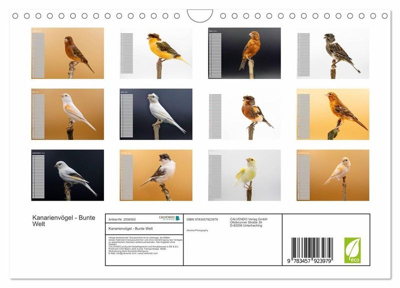QUALITÄT - Hochwertiger Fotokalender mit 12 wunderschönen Motiven auf lichtbeständigem Bilderdruckpapier, robuste Spiralbindung mit Aufhängebügel.NACHHALTIG - deutliche Abfallreduzierung durch bedarfsgerechte Einzelstückfertigung, umweltfreundliches FSC-zertifiziertes Papier, Produktion in Deutschland, klimabewusste Logistik.PERFEKTES GESCHENK - Kalender für Freunde und Familie, für Kinder und Erwachsene, jung und alt, zu Weihnachten, Geburtstag oder zwischendurch.VIELFALT - Bildkalender in verschiedenen Formaten, z.B. DIN A5, DIN A4, DIN A3 sowie DIN A2. Ob Naturmotiv, Gemälde oder Fotos, ideal für ein persönliches Wohlfühlambiente.Wunderschöne Bilder, welche die ganze bunte Vielfalt der Kanarienvögel zeigen von Autor(in): Andreas Kretschmar