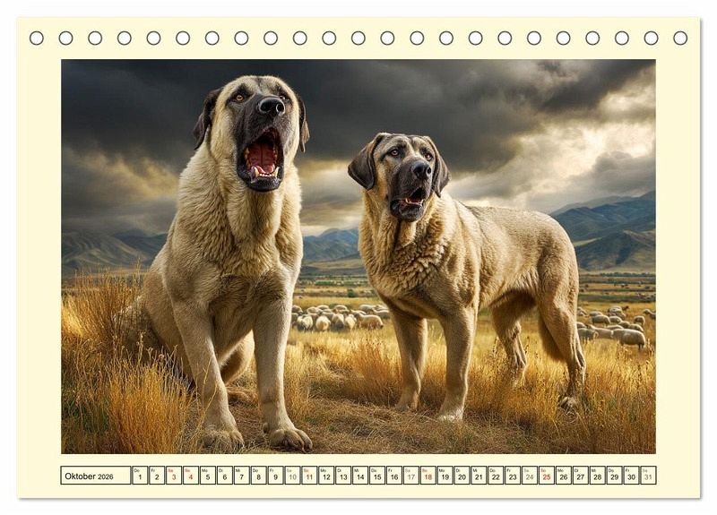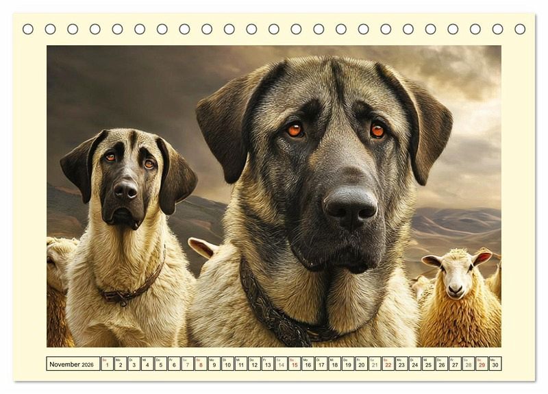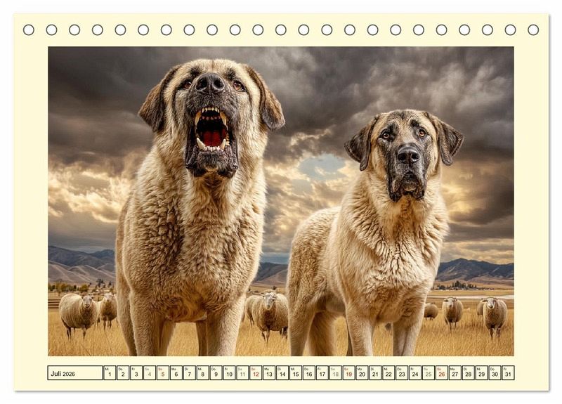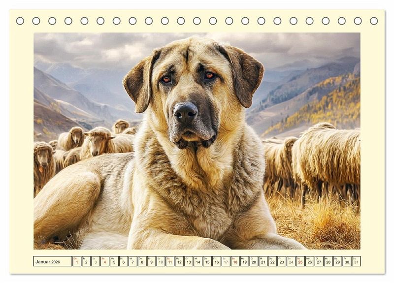Kangals gehören zu den beeindruckendsten Herdenschutzhunden der Welt. Sie agieren mit Eigenständigkeit, Mut und unermüdlicher Wachsamkeit. Egal ob in den Bergen oder auf dem Feld, sie bleiben immer in der Nähe ihrer Herde und wenden Gefahren ab. Alle Illustrationen wurden mit der Hilfe von KI erstellt und zeigen ihren eindrucksvollen Einsatz. Ein toller Kalender für alle, die kraftvolle Hunde bei ihren Arbeitsmomenten lieben.