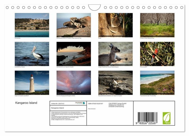 QUALITÄT - Hochwertiger Fotokalender mit 12 wunderschönen Motiven auf lichtbeständigem Bilderdruckpapier, robuste Spiralbindung mit Aufhängebügel.NACHHALTIG - deutliche Abfallreduzierung durch bedarfsgerechte Einzelstückfertigung, umweltfreundliches FSC-zertifiziertes Papier, Produktion in Deutschland, klimabewusste Logistik.PERFEKTES GESCHENK - Kalender für Freunde und Familie, für Kinder und Erwachsene, jung und alt, zu Weihnachten, Geburtstag oder zwischendurch.VIELFALT - Bildkalender in verschiedenen Formaten, z.B. DIN A5, DIN A4, DIN A3 sowie DIN A2. Ob Naturmotiv, Gemälde oder Fotos, ideal für ein persönliches Wohlfühlambiente.13 Reisefotos der traumhaften Insel im Süden Australiens von Autor(in): Peter Schickert