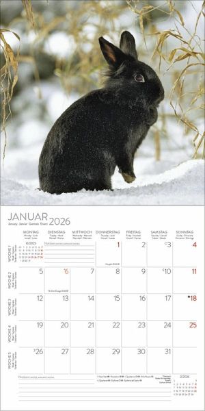 Flauschige und niedliche Kaninchen sind die Hauptdarsteller in diesem praktischen Kalender. Mit viel Platz zum Eintragen und einer Übersicht mit Ferienterminen.