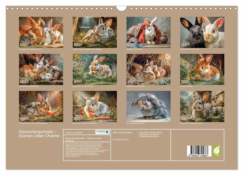 QUALITÄT - Hochwertiger Fotokalender mit 12 wunderschönen Motiven auf lichtbeständigem Bilderdruckpapier, robuste Spiralbindung mit Aufhängebügel.NACHHALTIG - deutliche Abfallreduzierung durch bedarfsgerechte Einzelstückfertigung, umweltfreundliches FSC-zertifiziertes Papier, Produktion in Deutschland, klimabewusste Logistik.PERFEKTES GESCHENK - Kalender für Freunde und Familie, für Kinder und Erwachsene, jung und alt, zu Weihnachten, Geburtstag oder zwischendurch.VIELFALT - Bildkalender in verschiedenen Formaten, z.B. DIN A5, DIN A4, DIN A3 sowie DIN A2. Ob Naturmotiv, Gemälde oder Fotos, ideal für ein persönliches Wohlfühlambiente.Kaninchen im künstlerischen Realismus von Autor(in): Liselotte Brunner-Klaus
