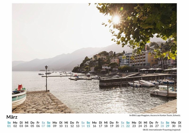 Entdecken Sie die Schönheit des Kantons Tessin mit unserem exklusiven Wandkalender! Lassen Sie sich Monat für Monat von 12 atemberaubenden Motiven dieser malerischen Region der Schweiz verzaubern - von idyllischen Seen bis hin zu majestätischen Bergen. Gedruckt auf hochwertigem, lichtbeständigem Bilderdruckpapier, kommen die Farben besonders brillant zur Geltung. Nachhaltigkeit liegt uns am Herzen: Der Kalender wird in Deutschland auf FSC-zertifiziertem Papier produziert. Perfekt für Ihr Zuhause oder als Geschenk für Natur- und Schweiz-Liebhaber. Holen Sie sich ein Stück Tessin an Ihre Wand und genießen Sie das ganze Jahr über mediterranes Flair! Hochwertig Erleben Sie ein Jahr voller Eleganz mit unserem Premium-Fotokalender. Jedes der 12 Motive ist auf hochwertigem, lichtbeständigem Bilderdruckpapier gedruckt, um die Lebendigkeit jedes Bildes zu bewahren. Die robuste Spiralbindung gewährleistet Langlebigkeit und einfache Handhabung. Nachhaltig Unser Engagement für die Umwelt spiegelt sich in jedem Exemplar wider. Durch die Produktion auf Abruf reduzieren wir signifikant unseren Abfall. Wir verwenden ausschließlich umweltfreundliches, FSC-zertifiziertes Papier. Stolz gefertigt in Deutschland, achten wir bei unserer Logistik auf Klimaschutz, um unseren ökologischen Fußabdruck zu minimieren. Das ideale Geschenk Dieser Kalender ist das perfekte Präsent für jeden Anlass - ob Weihnachten, Geburtstage oder einfach als liebevolle Aufmerksamkeit zwischendurch. Geeignet für Freunde, Familie, Kinder und Erwachsene gleichermaßen, bereichert er jedes Zuhause mit seiner Vielfalt und Schönheit, unabhängig vom Alter der Beschenkten.