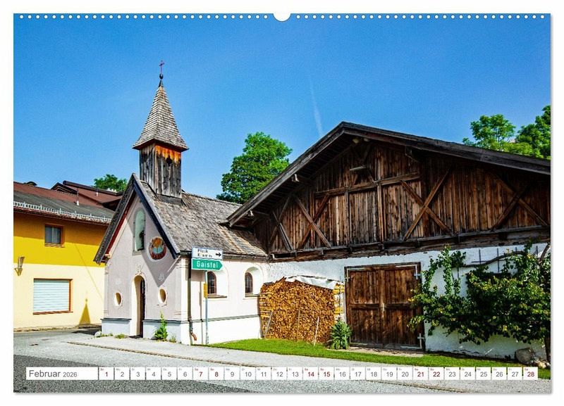 Juni: Die Kapelle und ein Bauernhof prägen das Landschaftsbild.